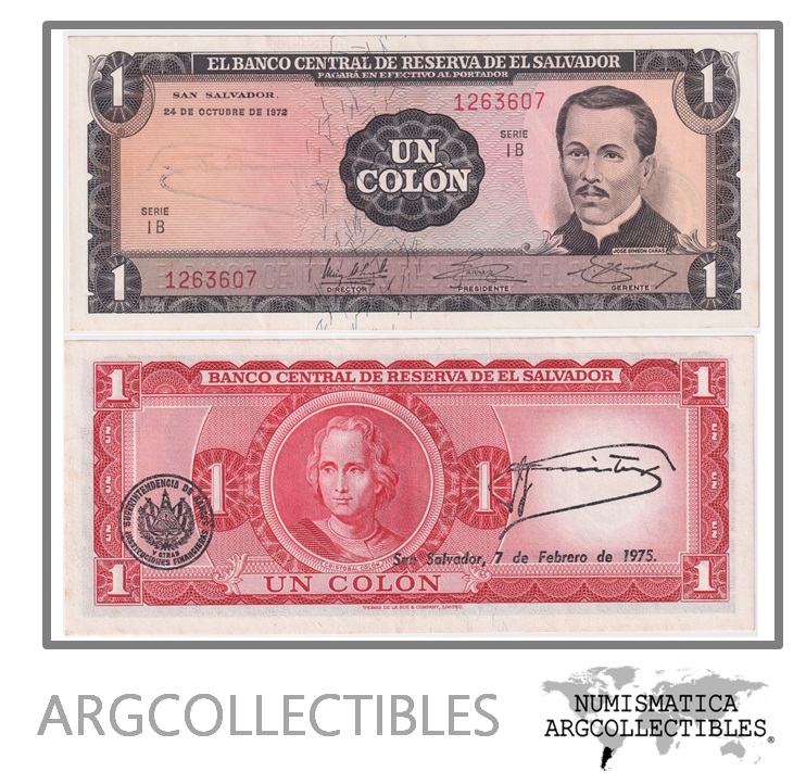 El Salvador Billete 1 Colon 1972 P-115 AU (Serie IB)