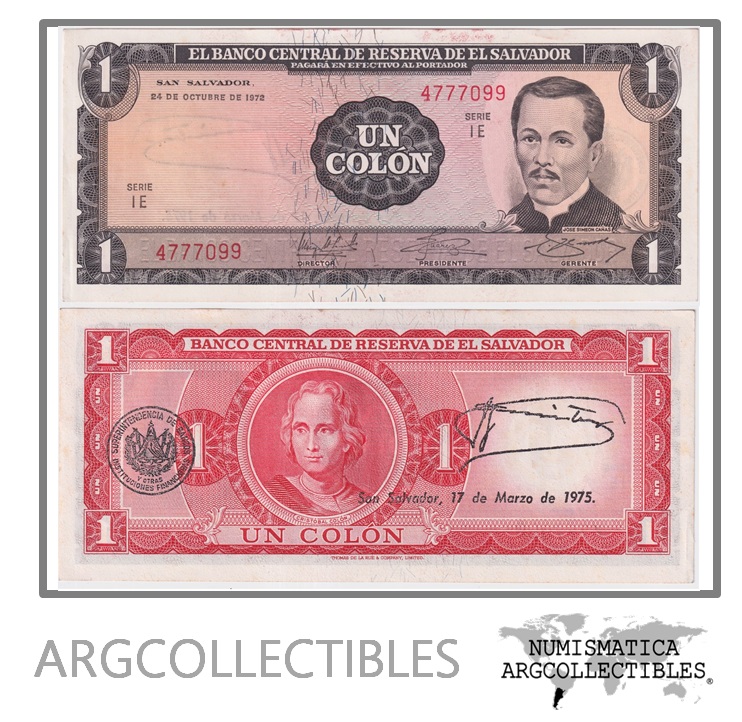 El Salvador Billete 1 Colon 1972 P-115 AU (Serie IE)