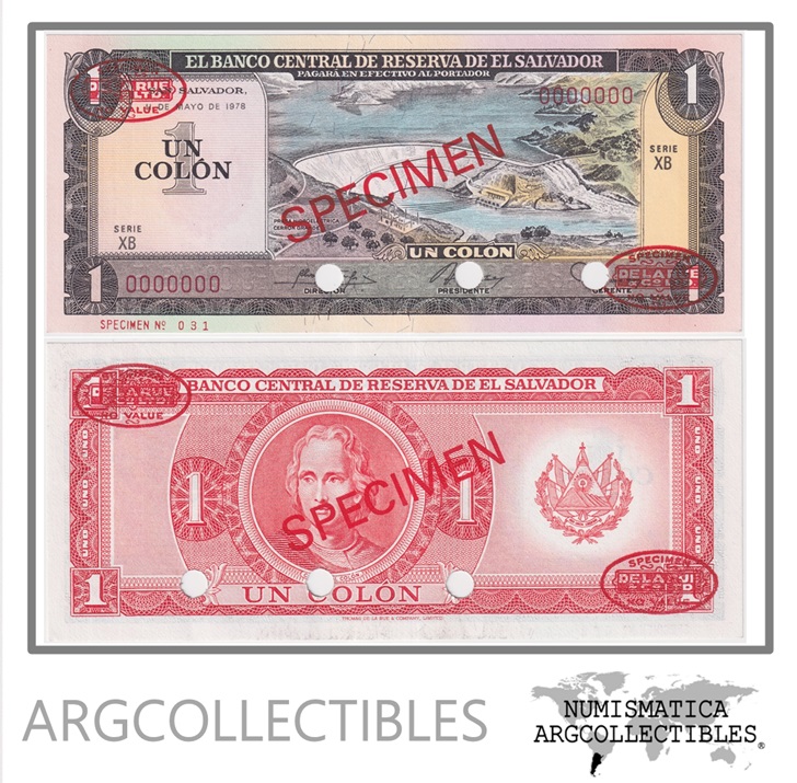 El Salvador Billete 1 Colon 1978 P-125 UNC (Specimen)