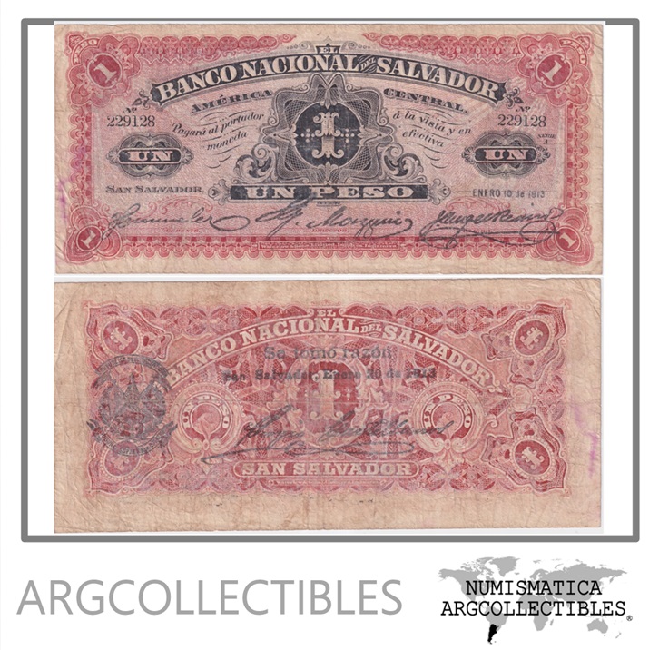 El Salvador Billete 1 Peso 1913 P-S-161b F+ (Banco Nacional)