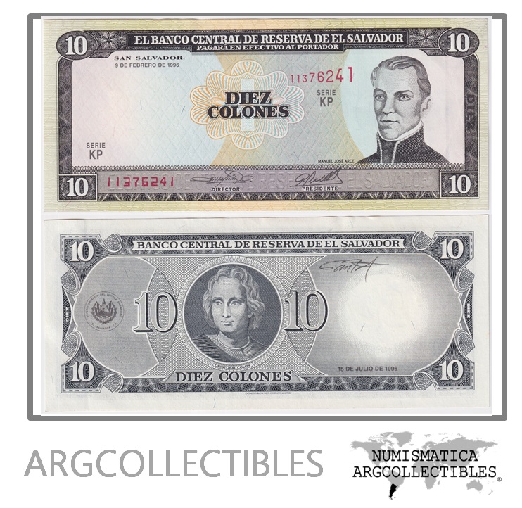 El Salvador Billete 10 Colones 1996 P-144 UNC (Serie KP)