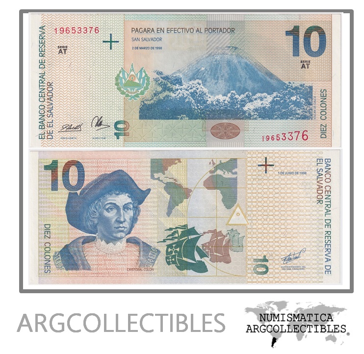 El Salvador Billete 10 Colones 1998 P-148b UNC (Serie AT)