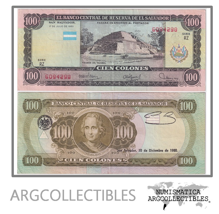 El Salvador Billete 100 Colones 1980 P-133 XF (Serie RZ)