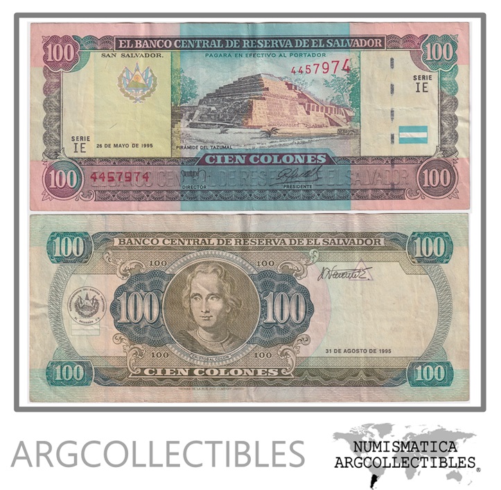 El Salvador Billete 100 Colones 1995 P-140 VF+ (Serie IE)