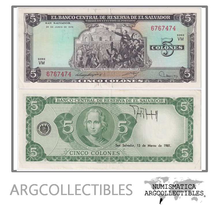 El Salvador Billete 5 Colones 1976 P-117 XF+ (SERIE VM)