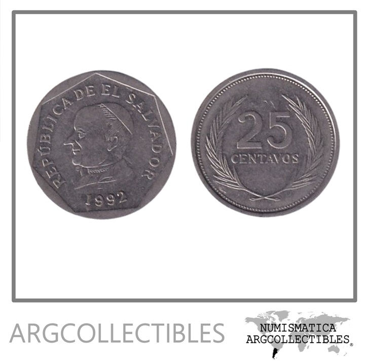 El Salvador Moneda 25 Centavos 1992 Acero KM-157a XF