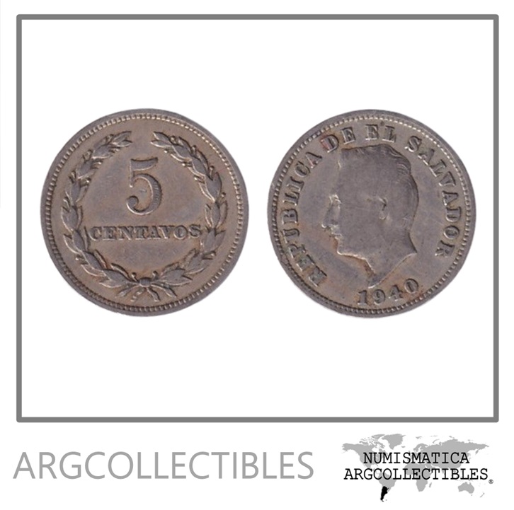 El Salvador Moneda 5 Centavos Niquel 1940 KM-134 VF