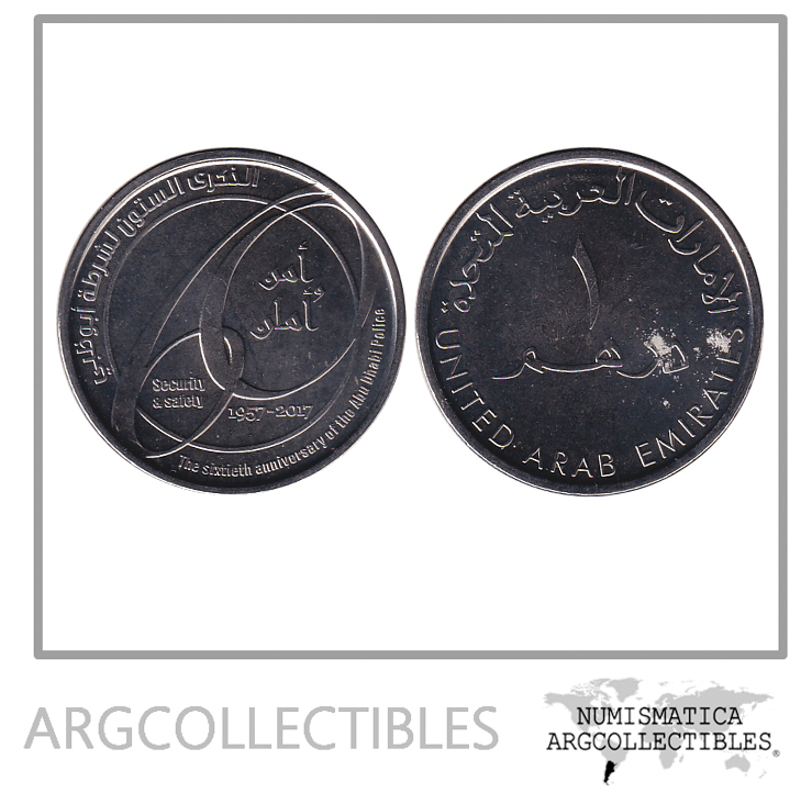 Emiratos Arabes Unidos Moneda 1 Dirham 2017 Niquel 60 Aniv Policia KM-UC-105 UNC