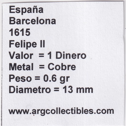 España Barcelona Moneda 1 Dinero 1615 Felipe II Cobre