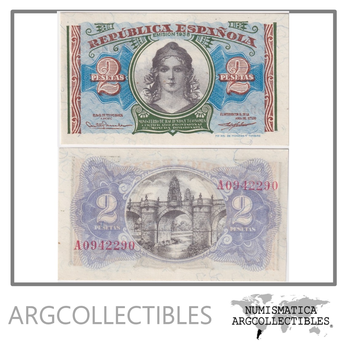 España Billete 2 Pesetas 1938 P-95 UNC (Serie A)