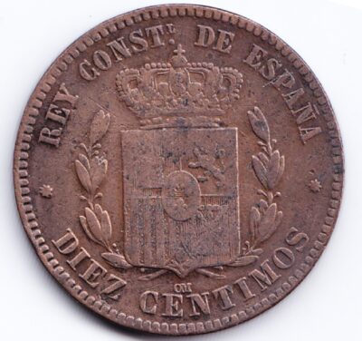 España Moneda 10 Centimos Bronce 1879 Alfonzo XII Vf+