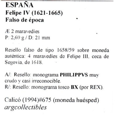 España Moneda 2 Maravedis 1621 – 1665 Cobre Felipe IV Falso de época