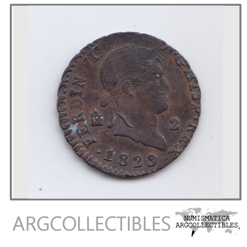 España Moneda 2 Maravedis 1829 Segovia Cobre KM-487.1 VF-