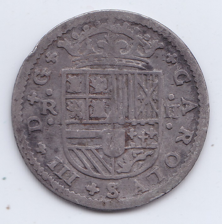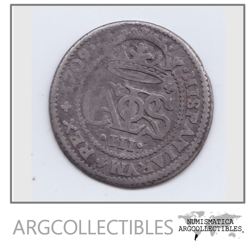 España Moneda 2 Reales 1709 Plata Carlos III VF+
