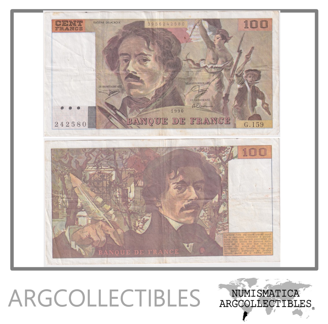 Francia Billete 100 Francos 1990 P-154e VF+