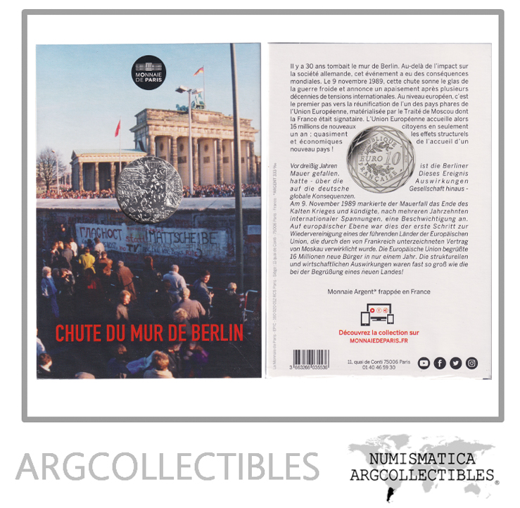 Francia Blister Moneda 10 Euros 2019 Plata 30 Aniv Caida Muro de Berlin UNC