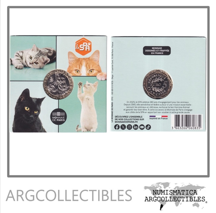 Francia Blister Moneda 5 Euros 2025 Gatos Bimetalica UNC