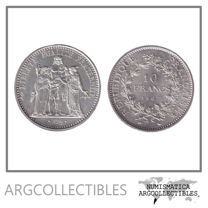 Francia Moneda 10 Francos 1967 Plata 900 Hercules KM-932 UNC