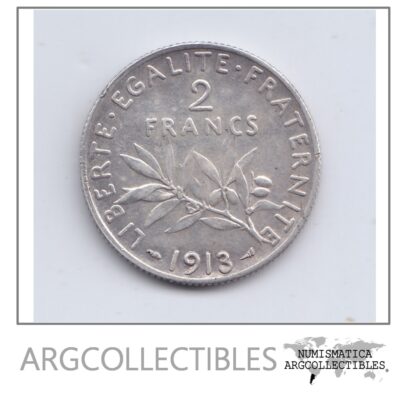 Francia Moneda 2 Francos Plata 835 Año 1913 Km-845.1 Vf+