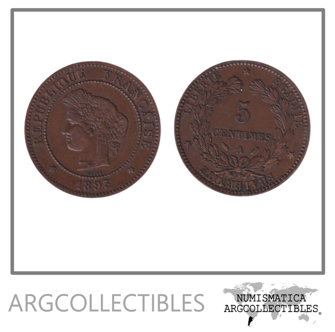 Francia Moneda 5 Centavos 1893 A Bronce KM-821 AU