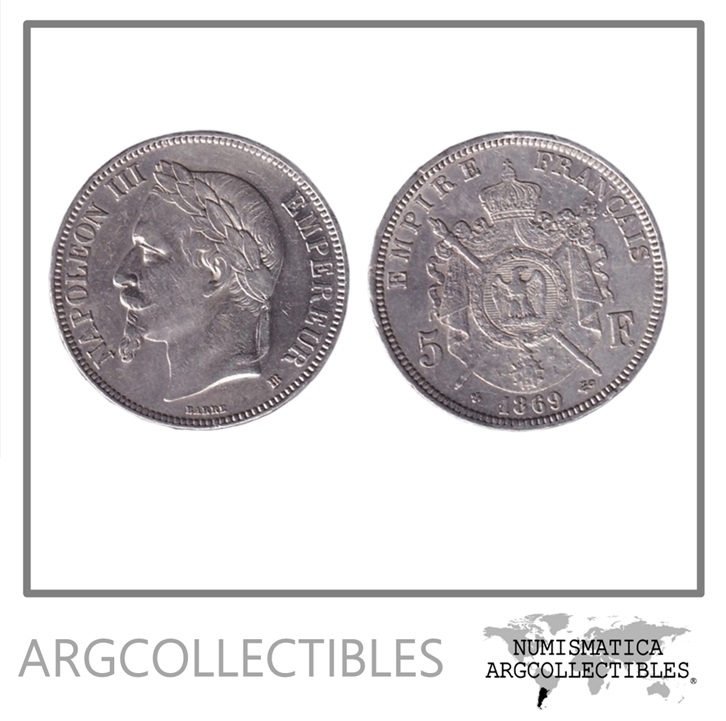 Francia Moneda 5 Francos 1869 BB Plata 900 Napoleon II Km-799 XF