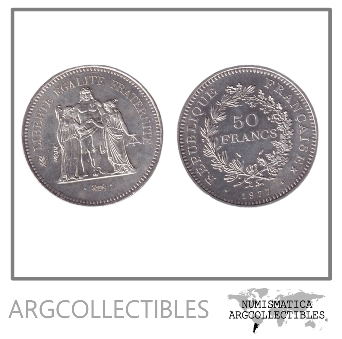 Francia Moneda 50 Francos 1977 Plata 900-30gr Hercules KM-941 UNC