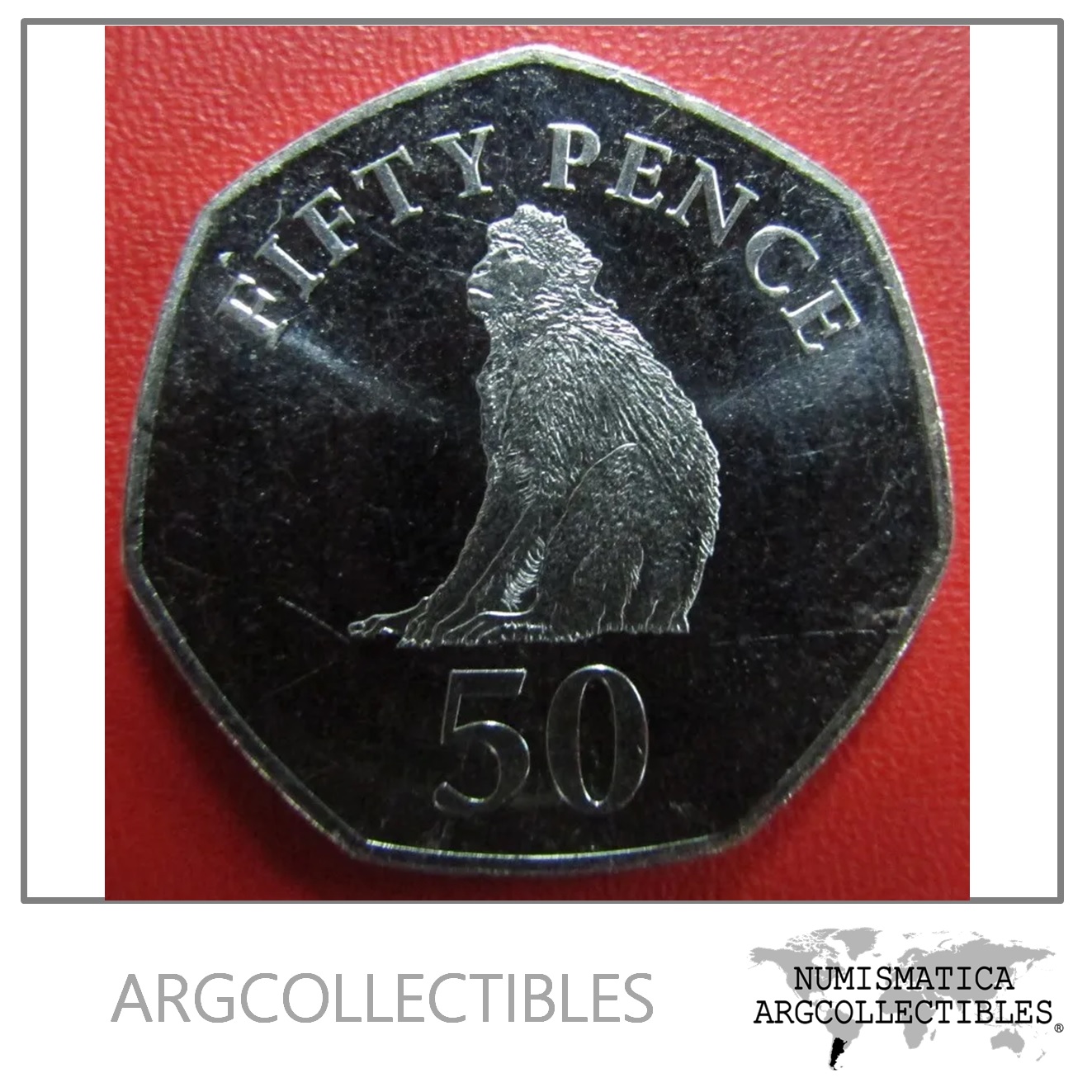 Gibraltar Moneda 50 Pence 2016 Unc Serie Animales Mono