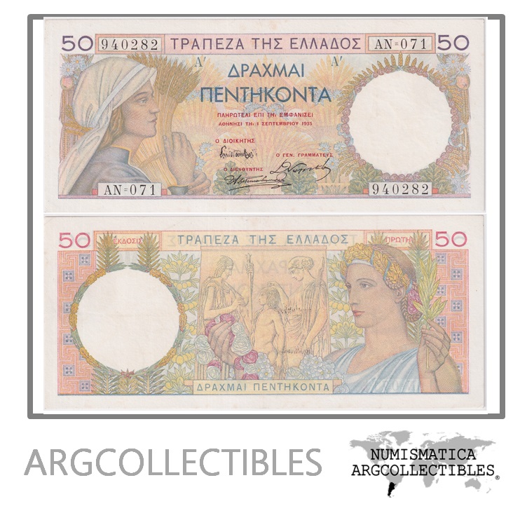 Grecia Billete 50 Drackmas 1935 P-104 AU