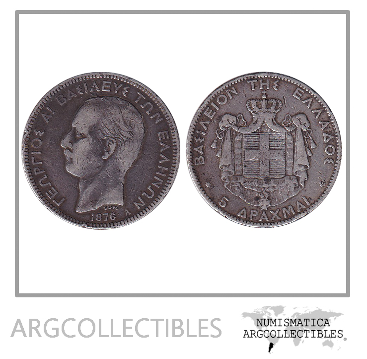 Grecia Moneda 5 Dracmas 1876 Plata 900 Rey Jorge I Km-46 VF+