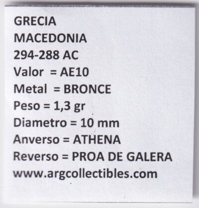 Grecia Moneda AE10 Macedonia 294-288 a.C. Bronce Athena GM2