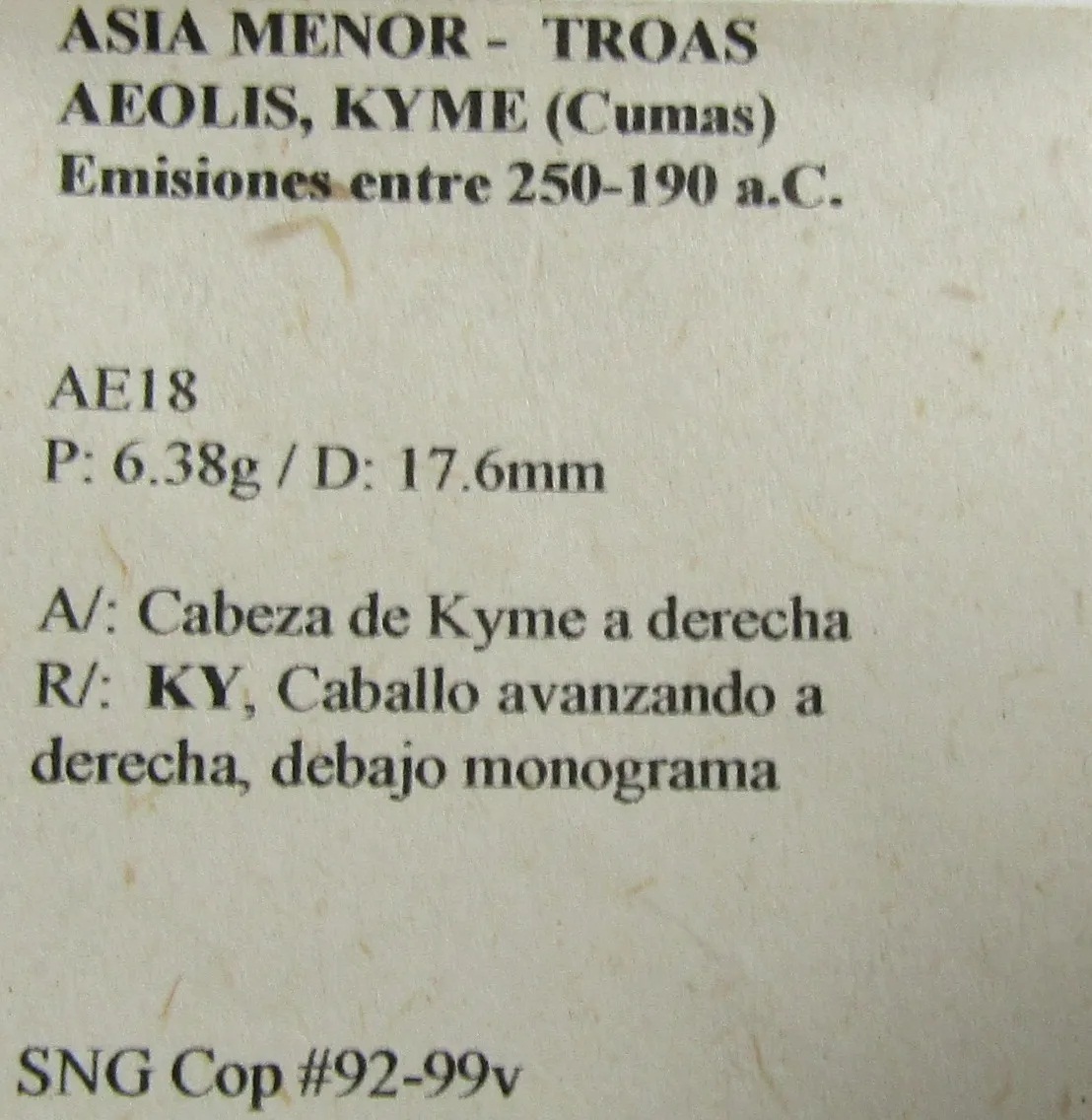Grecia Moneda Cuma Eolide 250-190 Ac Caballo Al Paso