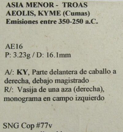 Grecia Moneda Cuma Eolide 300-250 Ac Magistrado Heracleos