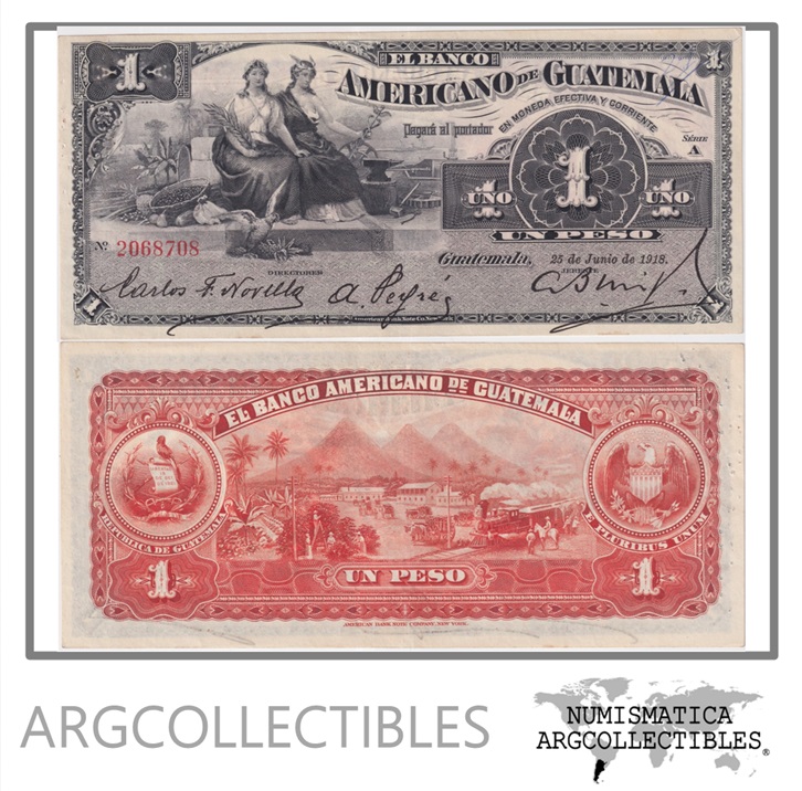 Guatemala Billete 1 Peso 1918 P-S-111b AU (Escrito/Pin Holes)