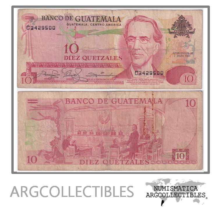 Guatemala Billete 10 Quetzales 1981 P-61c F+