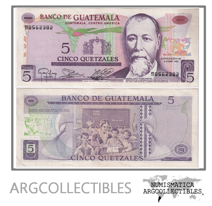 Guatemala Billete 5 Quetzales 1983 P-60c XF