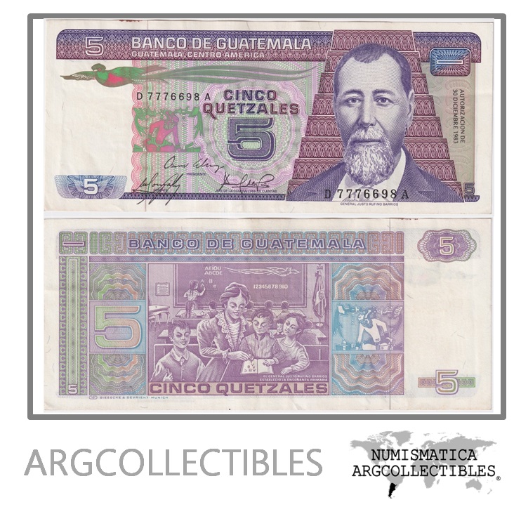 Guatemala Billete 5 Quetzales 1983 P-67 AU