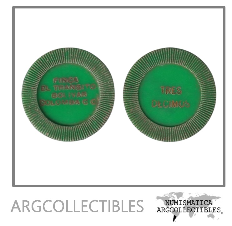 Guatemala Ficha Token 3 Decimos Finca el Transito Bolivar Colomba C.C