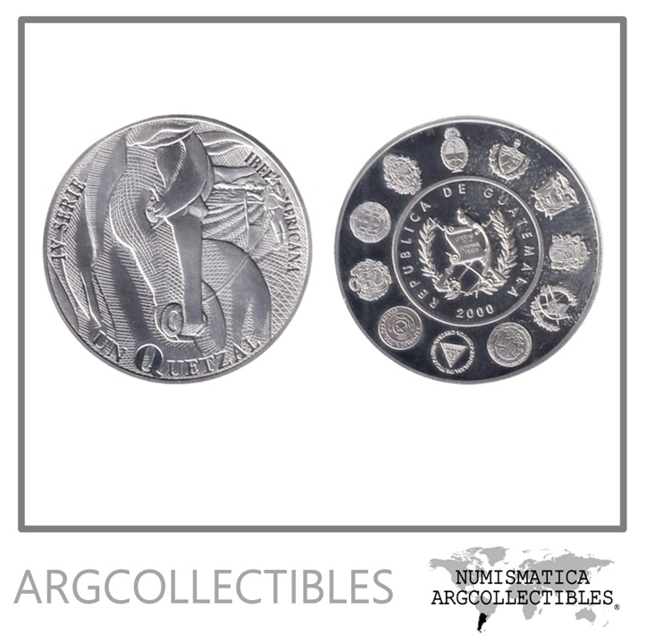 Guatemala Moneda 1 Quetzal 2000 Iberoamericana IV El Hombre y su Caballo Plata 925-27gr KM-286 Proof