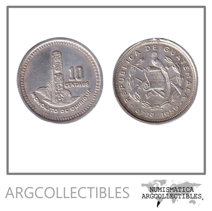 Guatemala Moneda 10 Centavos 1950 Monolito Plata 720 KM-256.1 XF+