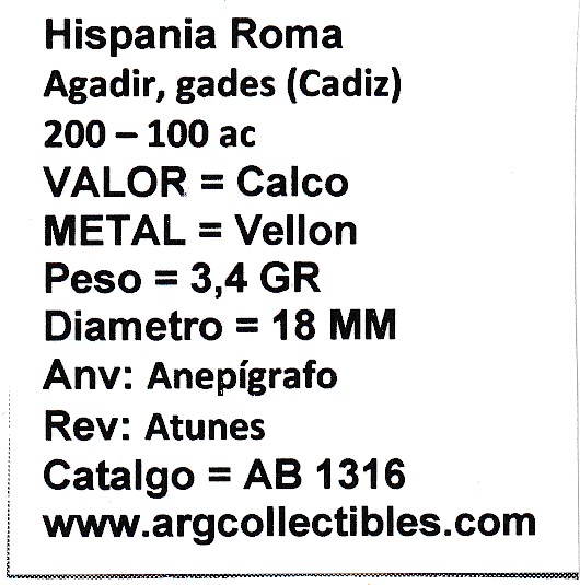 Hispania Roma Agadir Gades (Cadiz) Moneda Calco 200-100 a.CAB.1316 MA35