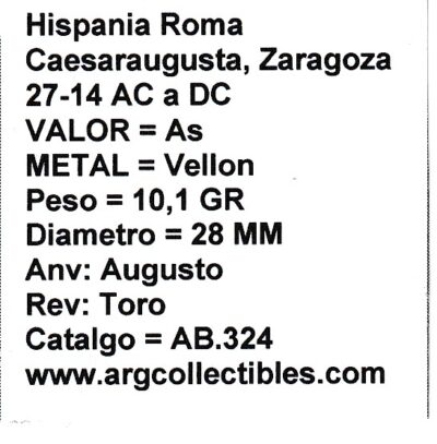 Hispania Roma Caesaraugusta Zaragoza Moneda 27-14 a.C a d.C As MA23