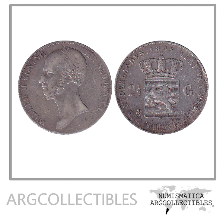 Holanda Moneda 2 1/2 Gulden 1845 Plata 945 William II KM-69 VF