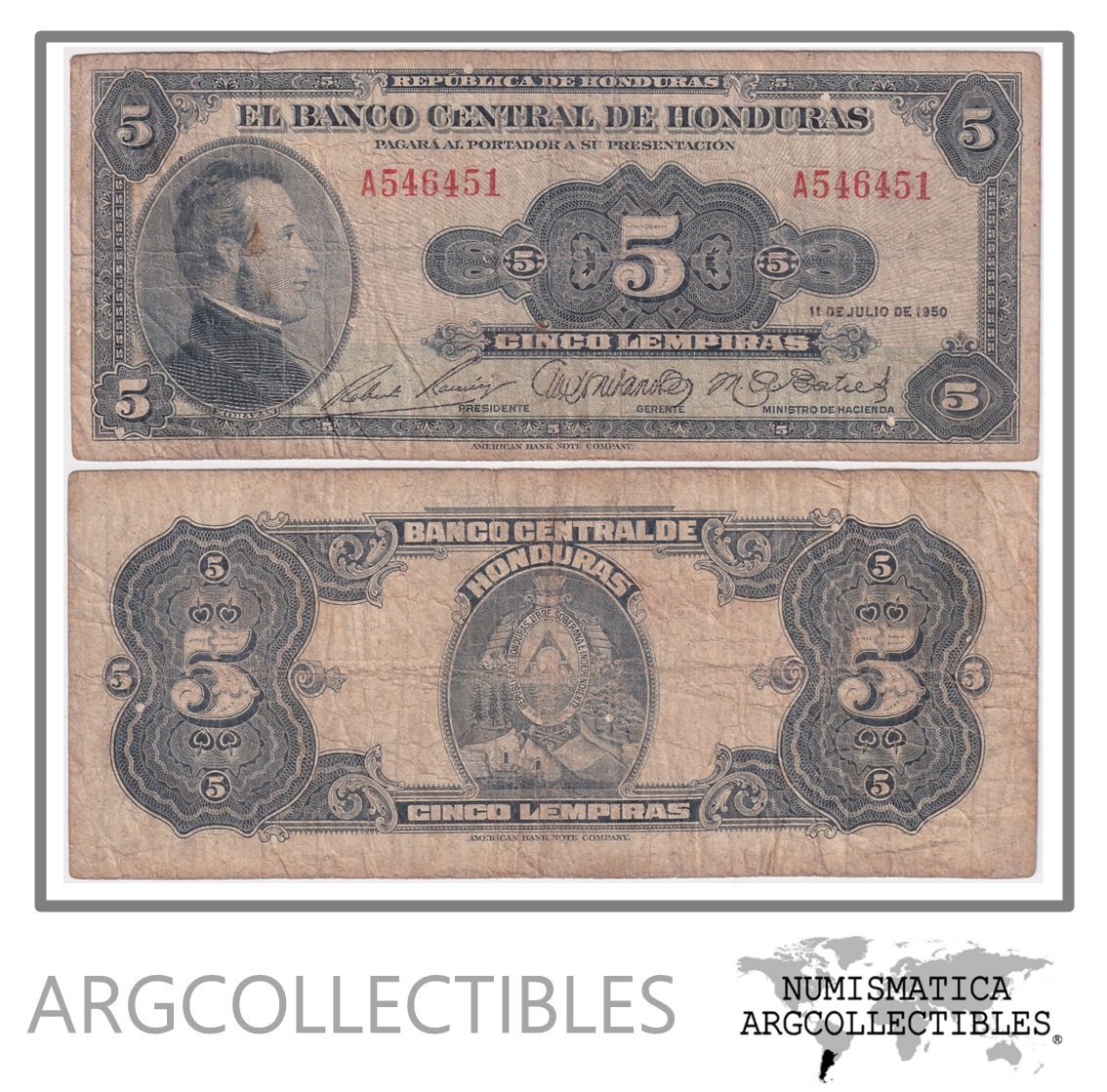 Honduras Billete 5 Lempiras 1950 P-46a F