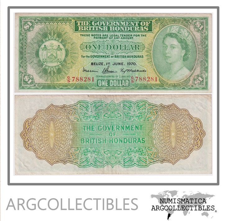 Honduras British (Belice) Billete 1 Dolar 1970 P-28c VF+
