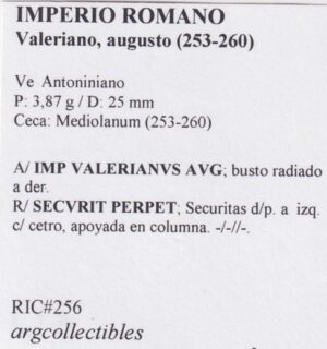 Imperio Roma Moneda VE Antoniniano 253 Valeriano Augusto RIC-256