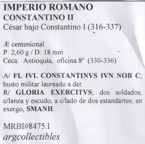 Imperio Romano Moneda AE Centenional 316 Constantino II, MRBI-8475.1