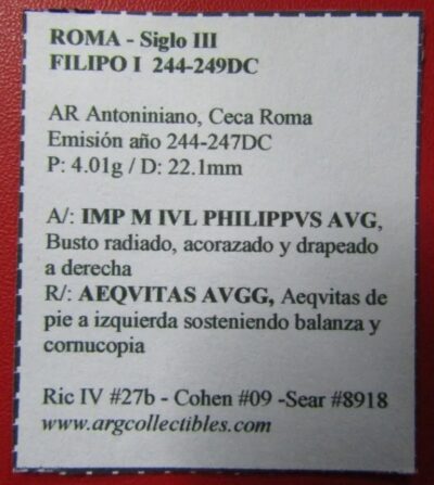 Imperio Romano Moneda Ar Antoniniano De Plata Año 244 Dc Emperador Filipo I Bb92