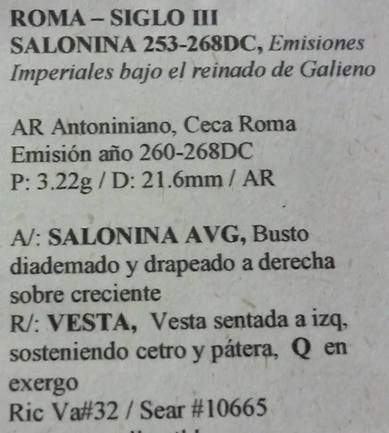 Imperio Romano Moneda Ar Antoniniano, Roma 260 Dc Salonina Aa38