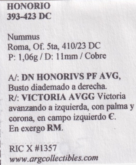 Imperio Romano Moneda Honorio (393-423) Nummus RIC X-1357