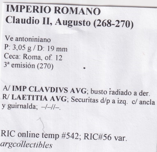 Imperio Romano Moneda VE Antoniniano 268 Claudio II RIC online temp-542,RIC-56 var.